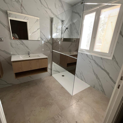 Installation Facile et Rapide Rénovation complète en 1-2 jours, sans poussière ni gravats. Posez-les vous-même ce week-end, même sur votre ancien carrelage. Rénovation express, sans perturbation.